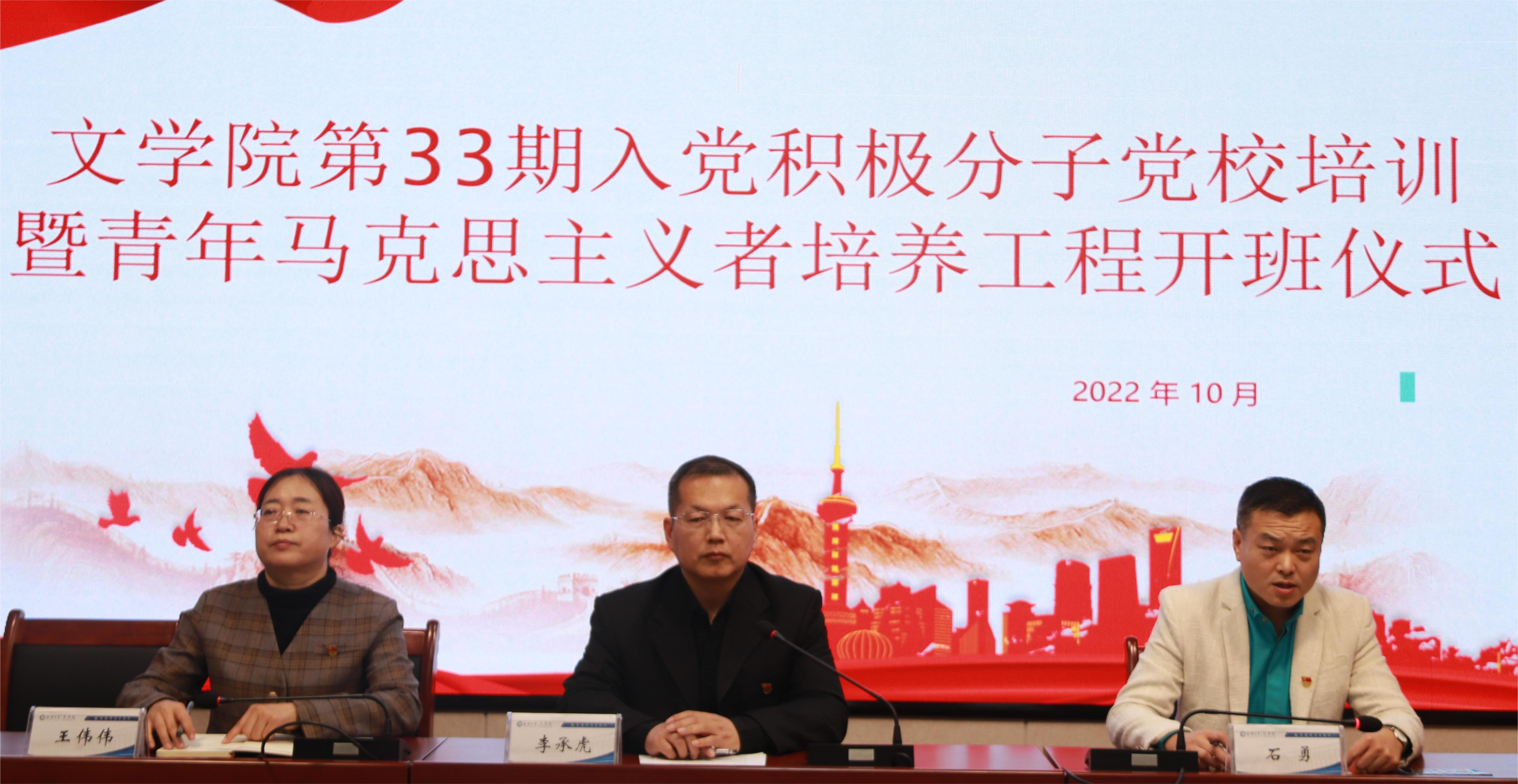 奋进新征程,建功新时代。石勇主持的开班典礼拉开本次入党积极分子培训的序幕。他提出,大家要学习党的二十大精神,思想上向党看齐,在行动上跟党奋斗,在情感上与党同心,努力成为有理想、敢担当、能吃苦、肯奋斗的新时代好青年。