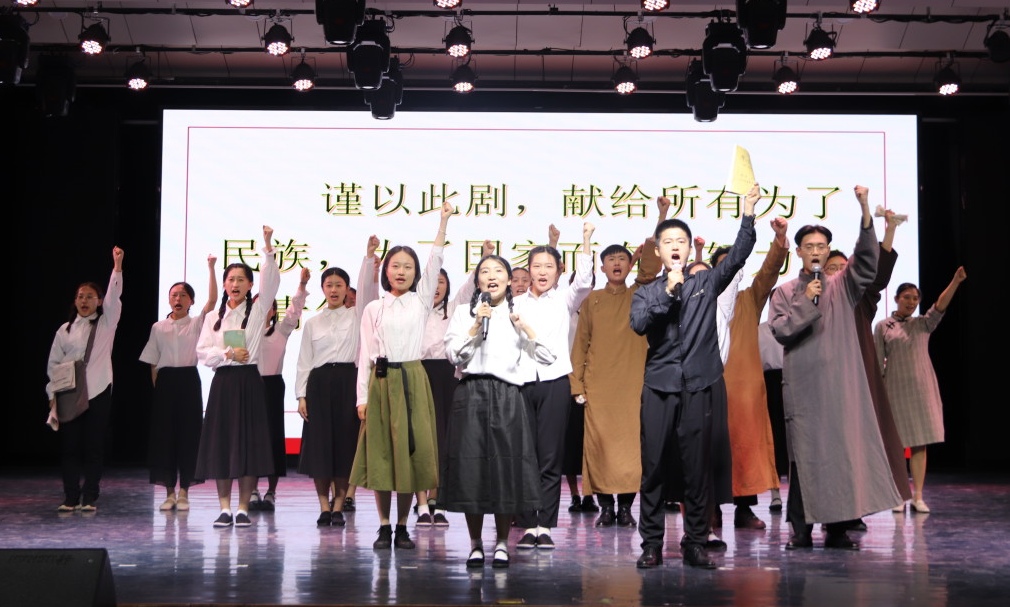 雄关漫道真如铁。《风暴》通过舞台剧的形式,体现了五四时期女青年勇于突破、敢于发声、积极破除陈旧观念的时代担当。在慷慨激昂的呐喊声中,青年们将解放国家和解放自己联系在一起。“从柳条湖畔到五指山下,从白山黑水到万亩沧田”,战火弥漫,何处言家。诗朗诵《同舟共济》展示了中华儿女们在民族生死存亡的危急时刻,走上街头,以血肉之躯撑起中华民族的气节,从学生到工人再到军人,他们用鲜血唤醒民众,用脊骨擎起苍穹。