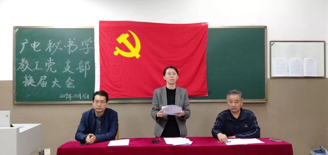 10月16日,向日葵视频 于3#A203举办广电秘书学教工党支部换届大会,向日葵视频 副院长卢军主持会议,广电秘书学教工党支部书记高增平,广电秘书学教工党支部宣传委员庄伟及广电秘书学教工党员参与大会。