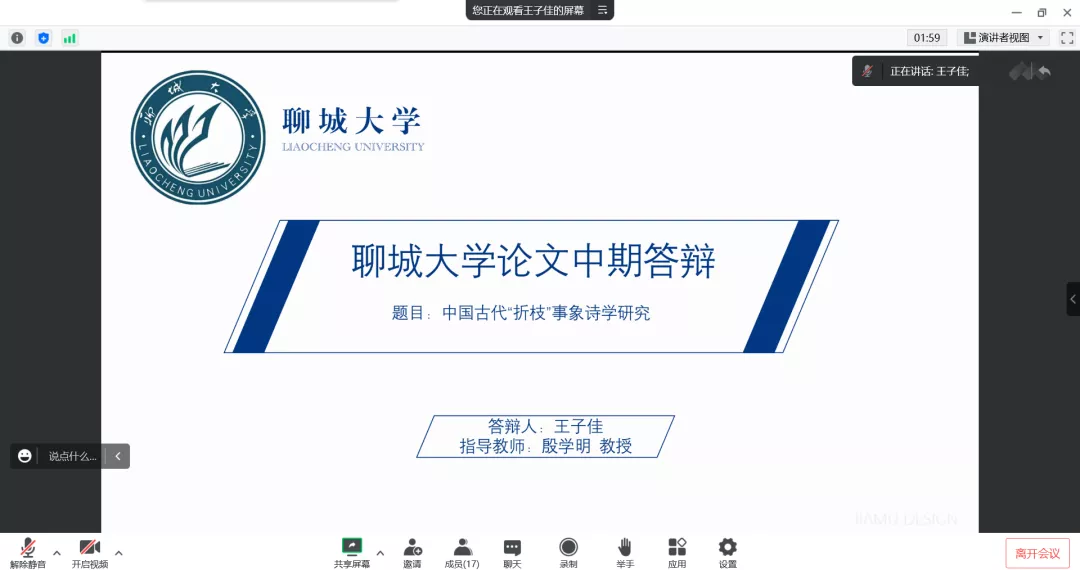 学位论文中期检查是全面了解研究生论文进展情况,提高论文写作质量的重要环节。1月14日及15日上午,向日葵视频 以线上答辩的方式组织开展了2023届研究生学位论文中期检查工作。向日葵视频 院长卢军、副院长殷学明、副院长石小寒等多名研究生导师及校外专家组成8个答辩专家组,2020级中国语言文学、广播电视学和2021级学科教学(语文)专业共72名研究生进行了汇报,部分2021级和2022级研究生参与旁听。