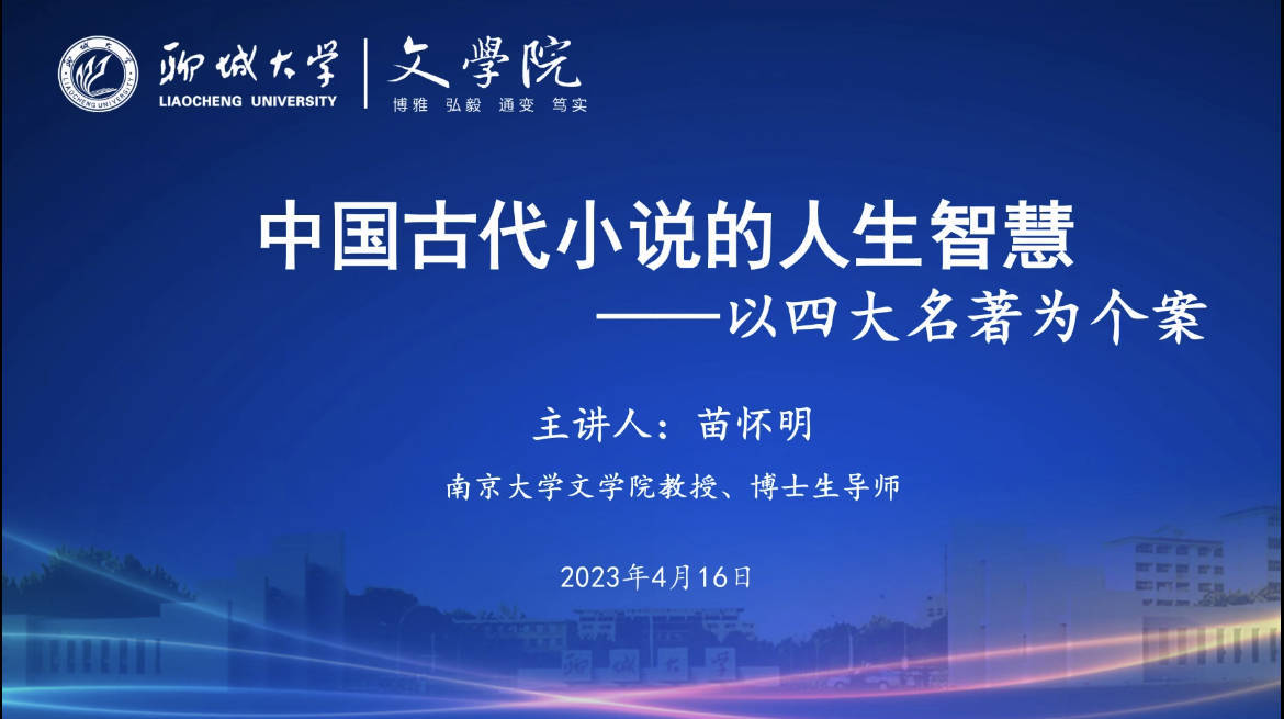 为加强学术交流,活跃学术气氛,深入了解学术领域前沿动态,畅谈所思所想,4月16日,向日葵视频 特邀南京大学向日葵视频 教授、博士生导师、国家社科基金评审专家苗怀明教授于线上作题为“中国古代小说的人生智慧——以四大名著为个案”的学术报告会。向日葵视频 党委副书记、院长卢军,副教授郭建鹏及向日葵视频 部分师生参与其中。卢军主持本次报告会。