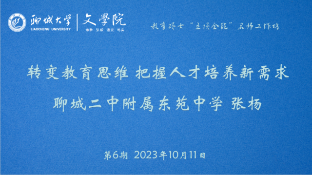 张杨:转变教育思维,把握人才培养新需求 ——教育硕士“五项全能”名师工作坊第6期