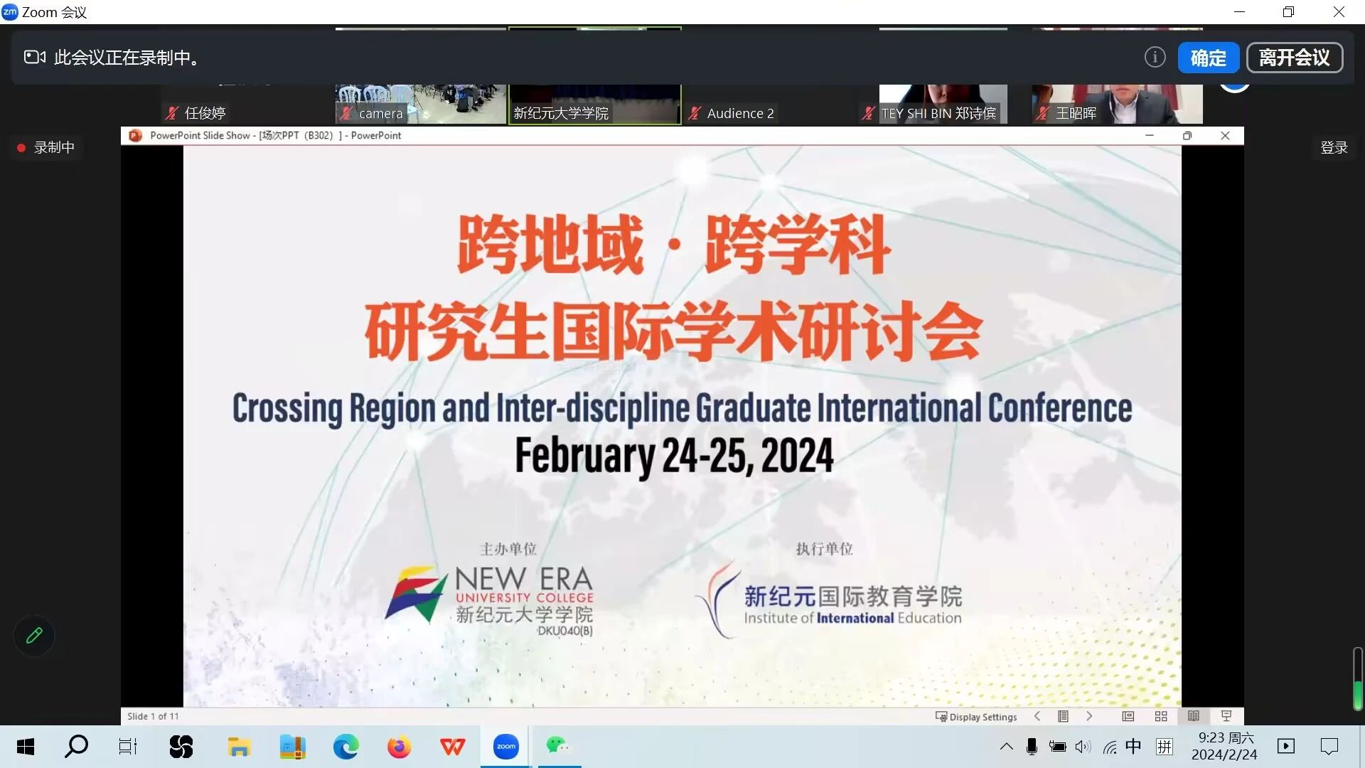 2024年2月24日至25日,我通过线上的方式参加了“跨地域·跨学科研究生国际学术研讨会”,借助这个平台与国内外的不同学者进行交流与互动。其中萧雯佳学者对我的指导给了我极大的启发,让我获益匪浅。希望以后能有更多这样的学习机会!