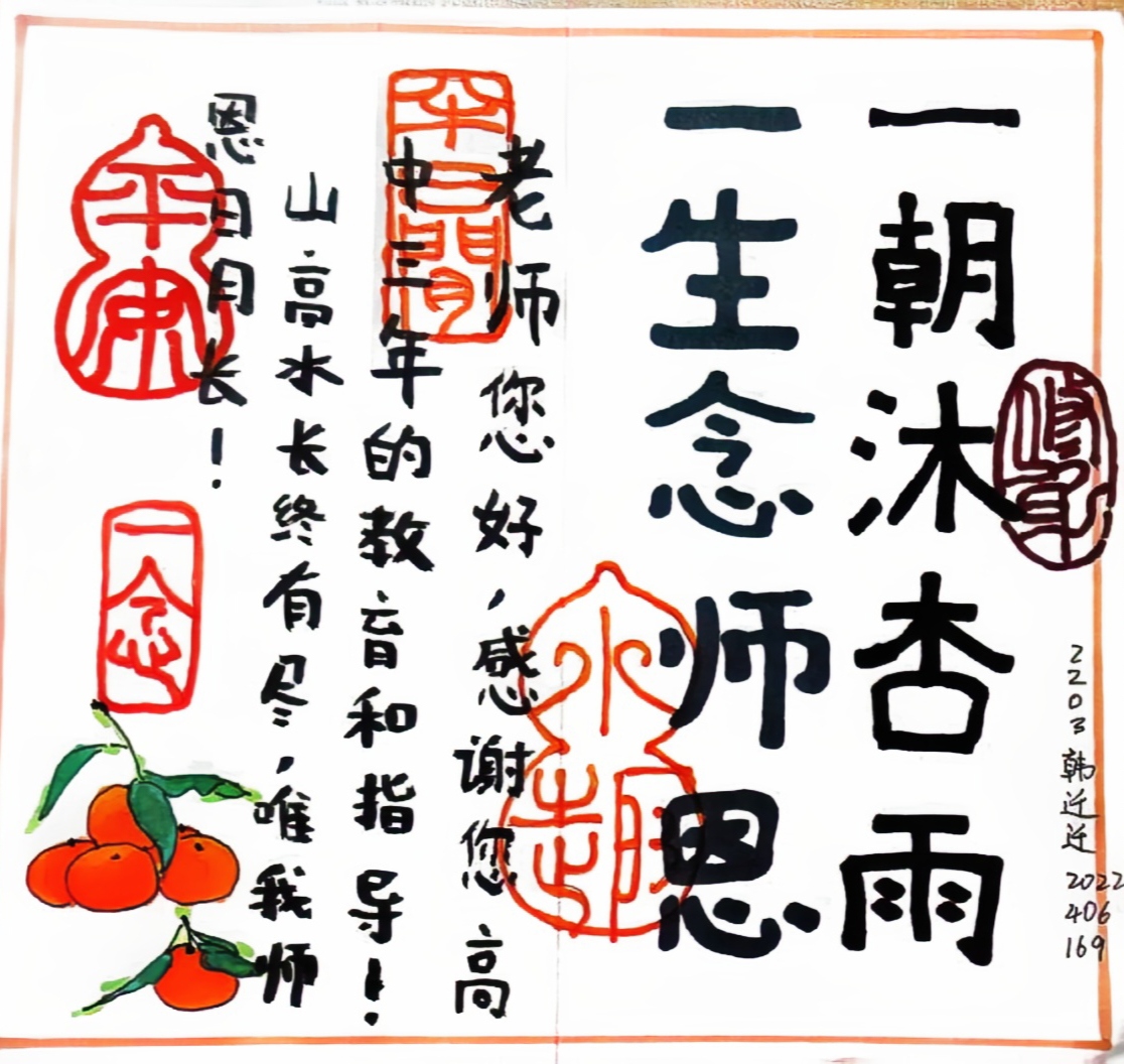 珍重相处,知己常相伴。2021级5班褚立坤以一封手写书信向朋友表达了相知、相识的感恩,字里行间流露出对朋友深深的思念,并在信的结尾给予朋友真挚的祝福,愿岁并谢,与长友兮;感恩同行,相遇即温暖。2021级1班潘春竹以爱为名,以花为礼,通过手作贺卡表达与朋友相遇同行的感激,每一朵手工纸花都寄托了对朋友浓浓的爱意,纸短情长,伏惟珍重。感恩资助,励志青春。2022级王同学的一封手写信,情真意切地表达了对父母和国家的感恩,表示愿以自己的点滴之力,报效祖国。鸦有反哺情,羊有跪乳恩。2021级7班唐钰杰在拉萨旅行时给父母投递了一张明信片,在明信片上表达了对父母的感激之情,并祝愿自己的家庭和和美美,家人平安喜乐。天涯海角有尽处,只有师恩无穷期。2022级3班韩迁迁借助手绘贺卡,感念老师孜孜不倦的教诲,师泽如光,虽微致远。