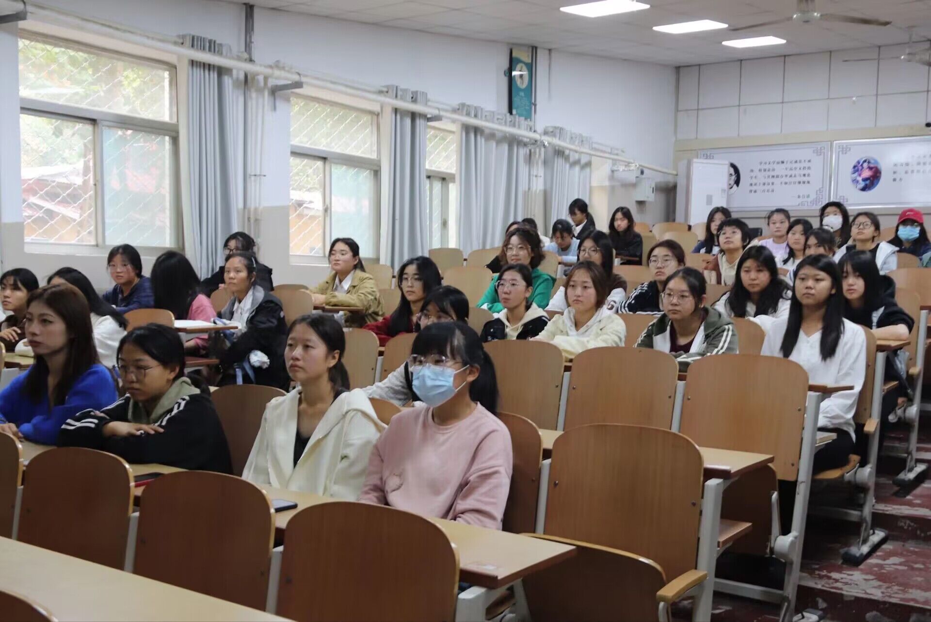 青春红丝带,防艾校园行。本次活动以同学们集中观看线上直播的方式展开。讲座伊始,艾滋病预防控制中心的专家从艾滋病基本知识及危害、艾滋病流行现状、艾滋病防治政策及反歧视教育等方面,向同学们普及防治知识,以倡导青年学生不断提高自我保护意识和能力。专家们表示,实践证明开展有关健康教育的系列活动是最有效的防控策略之一,也是倡导用科学和健康的行为方式来提高防艾意识和预防警示性,进一步培养青年学生自尊自爱的意识和社会责任感的一种有效方法。此外,他们指出:恐惧来源于未知,呼吁同学们多了解艾滋病的相关知识,保护好自己的同时不要歧视艾滋患者。珍爱生命始于心,防治艾滋践于行。现场观看完直播后的每一位同学纷纷表示:今后将会加强对于艾滋病知识的关注和学习,同时带动身边同学了解艾滋、防护艾滋,努力提高防护意识。