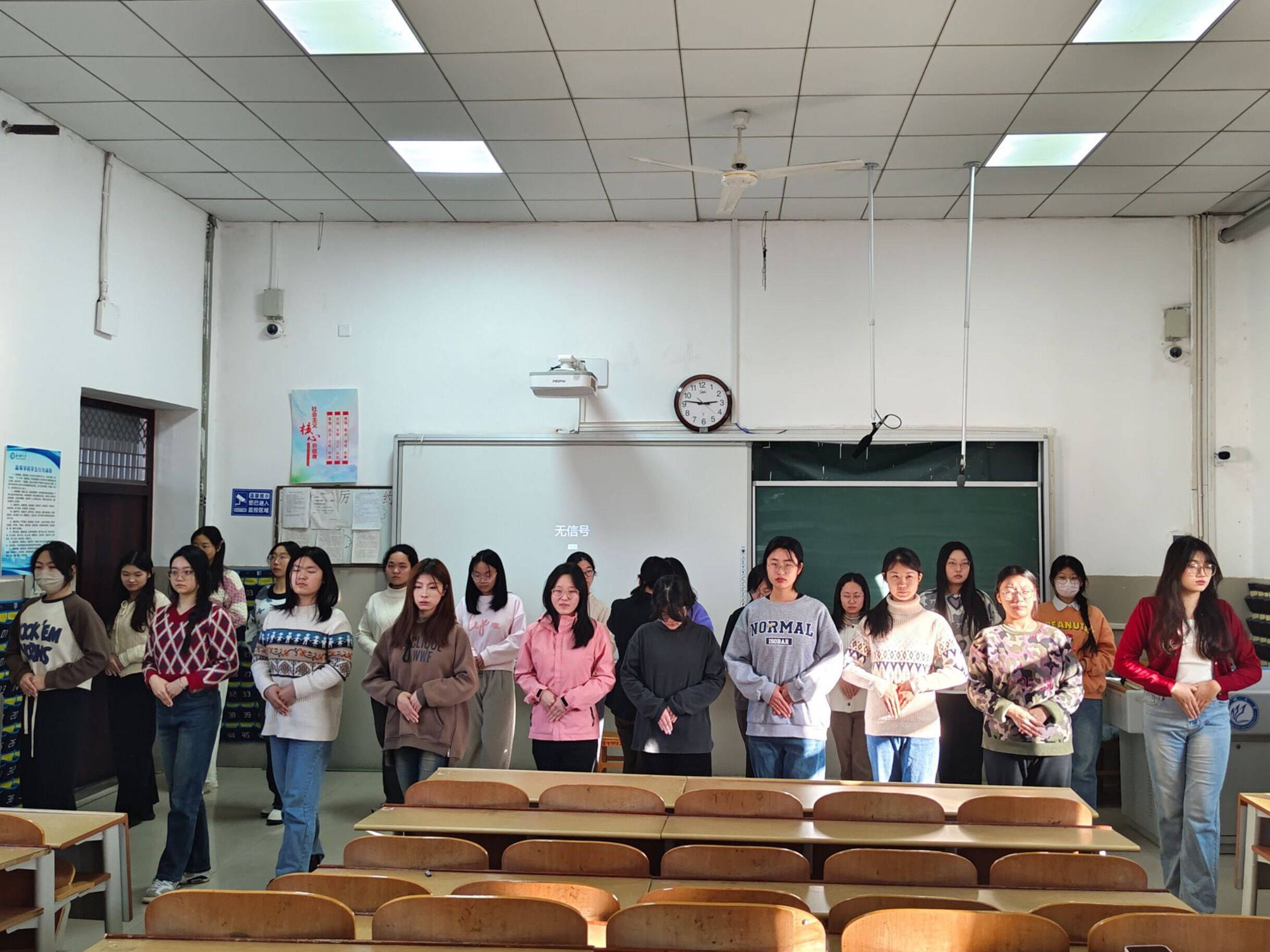 邢红静老师以2023级1班贾荟茹的站姿为例,纠正同学们日常生活中常见的头部前倾错误站姿,她指出,正确的站姿应为肩膀打开,后脑勺、背部,臀部,脚跟处于一条直线上,下巴微收,眼睛目视前方,强调日常生活中可以利用拉弓射箭法或靠墙站立练习纠正站姿,练习时应注意头正、肩平、收腹,后脑勺、肩胛骨、小腿肚向后靠墙。在规范动作之后,邢红静老师鼓励同学们到教室前方练习站姿并耐心纠正每一同学的姿势。邢红静老师为同学们讲解坐姿和走姿,她表示,坐姿和走姿都是站姿的延续,老师为同学们普及“正位坐姿”、“交叉坐姿”、“前后坐姿”、“斜挂坐姿”4种常见坐姿的正确示范,并从“走”、“擦”、“绷”三个角度讲述正确的走路方式。随后,邢红静老师对走姿进行详细讲解,她表明除了做到以上三点外,也应注意胳膊摆动角度应与身体呈30度至45度的角度,摆动幅度不能太大。邢红静老师还对同学们的服饰选择和表情管理提出建议,提出服饰选择的“三个三原则”以及表情管理的具体方法。礼仪培训结束,同学们纷纷表示受益匪浅,在日后的生活中会主动练习,规范自己的仪态,提升自己的气质。