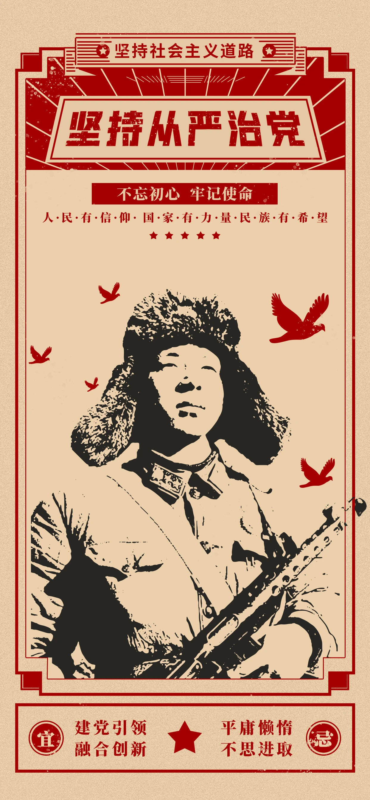 本次活动旨在通过创意十足的海报设计,唤起大家对雷锋精神的深刻关注与思考,同学们用创意和才华,为雷锋精神注入新活力。其中,赵晨旭以雷锋形象为核心,周围加以和平鸽点缀,巧妙将团结友爱、热爱生活的理念与雷锋精神结合,不仅赋予传统符号新生命力,也生动表达雷锋同志“不忘初心、牢记使命”的坚定决心;杨亚男则选取雷锋日记、名言警句为创作素材,着重强调雷锋精神中无私奉献、乐于助人的核心内涵及其时代价值;陆泳睿利用简洁线条设计,精心构建视觉焦点,将时间元素融入其中,使得“学雷锋”纪念日不再是简单日期,而成为助人为乐、自强不息的象征;岳克硕选择简洁明了的口号作为理念核心,同时运用背景中充满激情和活力的鲜红色调,来激发读者情感共鸣,并传达出雷锋精神在当代社会的重要意义。