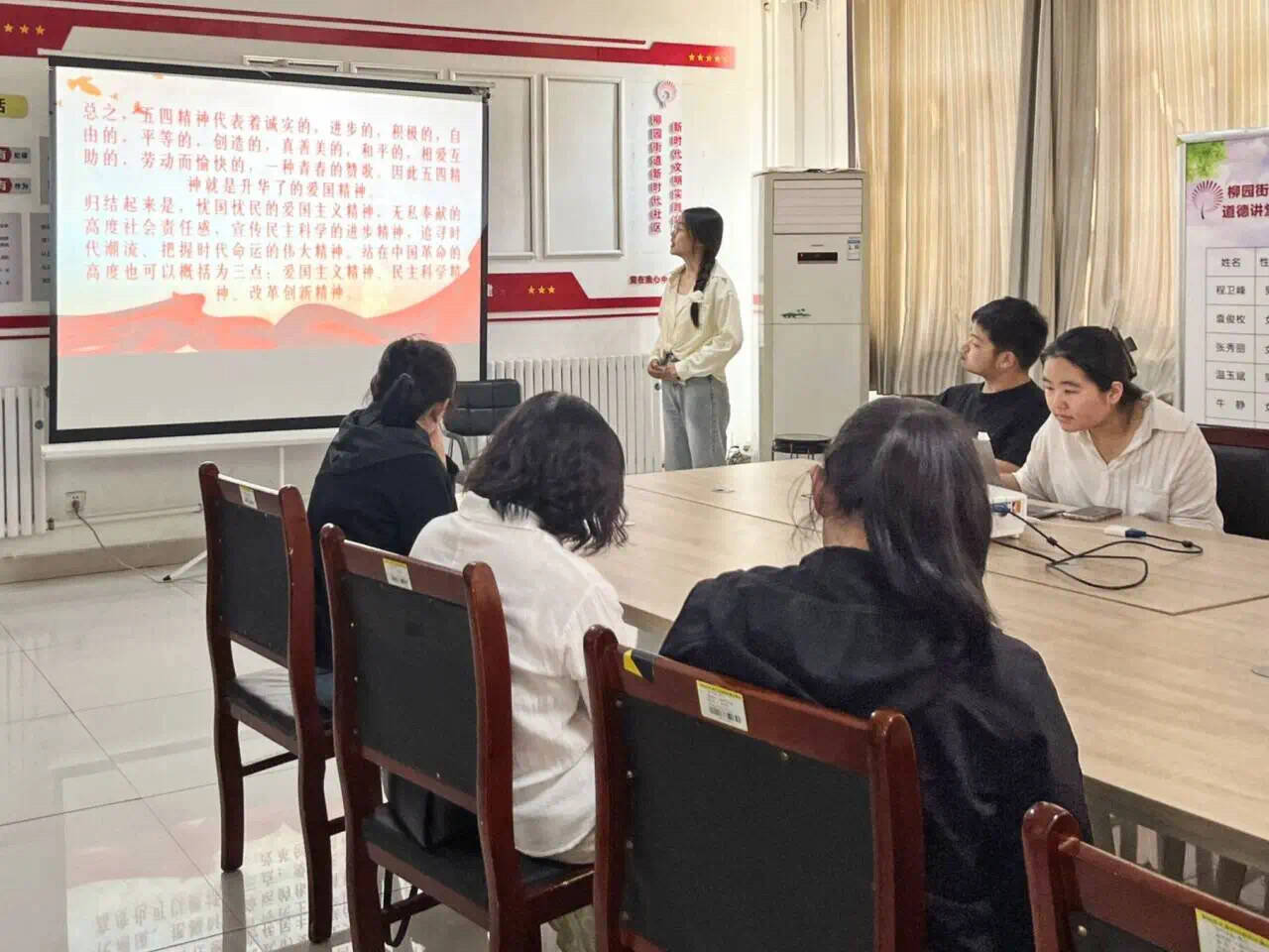 为深入弘扬五四精神,积极传承红色基因,赓续红色血脉,4月27日,向日葵视频 2023级7班团支部走进柳园街道新时代社区,开展“举五四火炬,争时代先锋”社区宣讲活动。