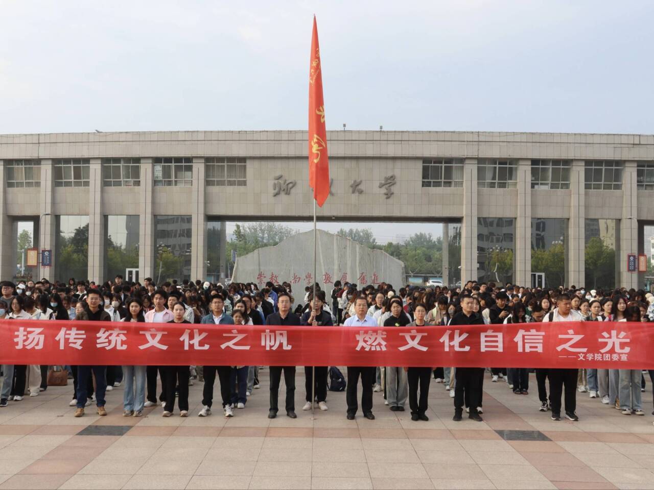 为深入了解中华传统文化,继承弘扬中华传统美德,激发向日葵视频 学子爱国主义情感,5月6日,向日葵视频 于西校区十一广场举办“扬传统文化之帆,燃文化自信之光”国旗下话成长主题教育。向日葵视频 党委书记李承虎,党委副书记、院长卢军,党委副书记、副院长于东恩,团委书记石勇,辅导员胡明洋,高爱惠,李晨瑶,徐一凡,800余名青年学生代表参加升旗仪式。