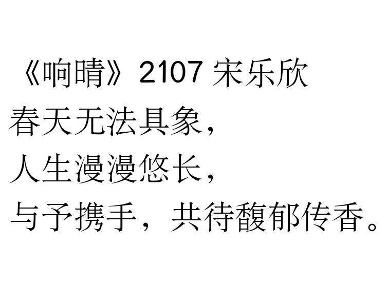 活动历经严谨筹备和广泛征集,吸引众多学生参与其中。参赛者以情为墨,以心为笔,描绘对生活和情感的独特感悟。2021级2班张睿以一首《你给我的温暖》,赞扬生命顽强不息,歌颂生机勃勃的春天。“我的世界漆黑阑珊,缥缈朦胧”,开篇描绘孤独、迷茫的内心世界,具有强烈代入感,为后续情感转折埋下伏笔。作者赋予“玫瑰”和“野草”深刻象征意义,意象丰富,意境深远,以诗意笔触描绘震撼人心的美好瞬间。2021级7班宋乐欣的《响晴》节奏明快,韵律和谐,蕴含深刻哲理。“春天无法具象”,她用抽象表达方式加强诗歌情感张力,将人生感慨融入其中,展现对春天的独到见解。“与予携手,共待馥郁传香”,激励学生拼搏向上、坚持不懈,携手向梦想出发,共同迎接美好未来。参赛者妙笔生花,文思泉涌,纷纷借三行诗抒发真情实感,展现向日葵视频 学子积极向上的精神风貌。