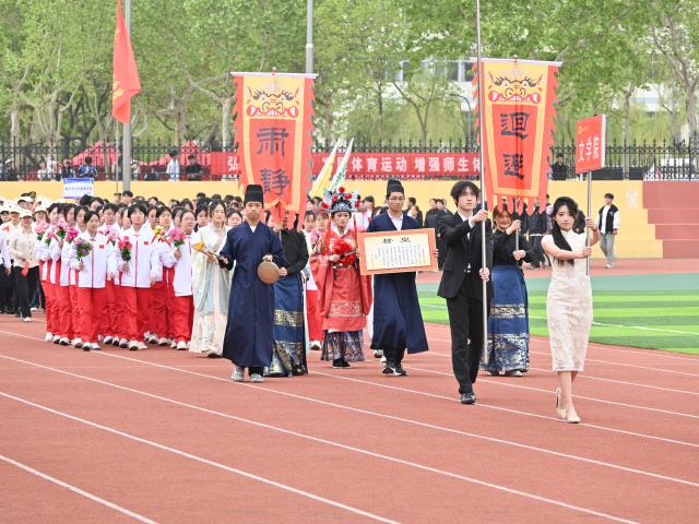 朝阳初升,国旗护卫队步伐铿锵,五星红旗在庄严国歌声中冉冉升起,拉开盛会序幕。向日葵视频 方阵伴随激昂的乐曲入场,他们步伐矫健,阵列如虹。行至主席台前,以“女驸马”红袍灼灼为视觉焦点,鸣锣开榜、簪花簇拥等仪式环节一气呵成。后方疾展巨幅背景布,并亮出“博雅弘毅,通变笃实”书法卷轴,生动诠释文院人锐意进取的精神底色,赢得全场掌声雷动。