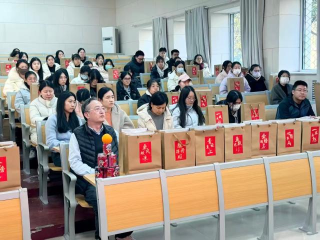 学院为每一位学生送上专属考研礼包,既满含暖心关怀与支持鼓励,更彰显对学生的重视与殷切期许。橙子和棒棒糖搭配组合寓意一战“橙”硕、考试“棒棒”,旺仔牛奶祝愿学生运气“旺旺”,士力架巧克力寄托“巧克”难题的祝愿,祝大家好事发生。随后,老师将礼包逐一送到考研学子手中,这份礼包既承载着师长的细致关怀,也凝聚着学院对每位逐梦学生的殷切期许与美好祝福,让备考学生深切感受到集体的支持,进一步坚定他们冲刺备考的信心与决心。学生备受鼓舞,纷纷表示将带着学院的关爱全力冲刺,以昂扬的姿态迎接考试,奋力书写属于自己的青春答卷。