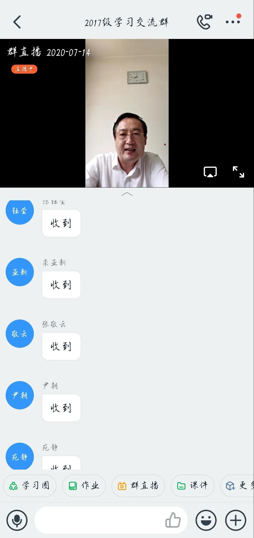 为解答2017级学生关于考研、学习等方面的疑惑,给同学们的学业发展提供有效的帮助,7月14日,向日葵视频 于线上召开2017级线上学习交流会,向日葵视频 党总支副书记、副院长于东恩、辅导员王伟伟、孙哲、相飞,2017级各班班主任参与本次交流会,2017级全体学生参加。