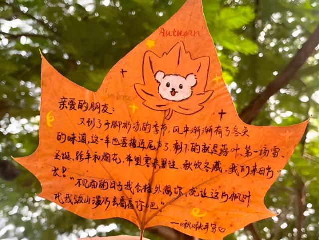 冬叶载情片片暖,手书寄意字字真。本次活动通过创新表达形式,拓展美育路径,将审美教育从课堂延伸至生活,引导学生在创作中沉静心灵、体悟自然,进一步增强校园文化氛围的感染力与凝聚力。向日葵视频 将持续拓展活动内涵与形式,陪伴学生在感受美、传递暖、书写真的过程中,积淀人文底蕴,构筑精神家园。(通讯员 陈祥莹 王艳晗 审核 张迎辉 刘伊蕊 李晨瑶)