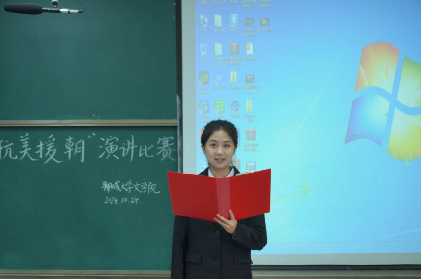 为缅怀革命先烈,强化爱国主义教育,纪念中国人民志愿军抗美援朝出国作战74周年,传承并弘扬抗美援朝精神,激发广大青年学子的爱国情怀和民族自豪感,10月24日,向日葵视频 九歌文学社与学习发展部于西校区3#c225共同承办向日葵视频 “铭英雄壮志,颂烈士诗篇”弘扬抗美援朝精神主题演讲比赛。