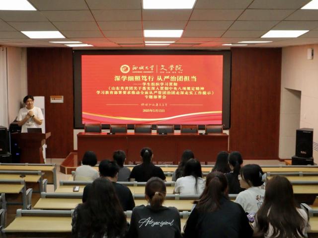 在部门汇报环节,各负责人依次介绍工作进展。秘书处郭玉涵从总务、档案、综合三个方面总结工作内容,简要介绍毕业生相关服务方案。学习发展部崔静茹在会上系统回顾近期工作成果,重点汇报朗诵比赛、禁毒教育、主题升旗等学风建设活动开展进程。权益服务部刘雅文聚焦毕业生需求进行简要汇报,从信息核验、诚信档案填写到物品捐赠,系统规划毕业生离校关怀工作。媒体宣传部杨婉宁围绕毕业季和青春诗剧宣传策划等进行介绍,指出报道形式将根据呈现内容灵活调整,力求立体展现学院风采。创新实践部钟雯琪表示,部门积极推进考研、考公、西部计划专题展板制作等系列工作,协助毕业生完成信息上传,确保信息获取时效性与准确性。文体活动部王欣蕊重点汇报近期活动筹备情况与相应措施,促进各项活动高质量推进。素质发展中心王菲表示,近期部门将继续完善学分认定机制,为学生成长搭建更科学的评价体系。生活服务中心郑毅表示,部门将持续做好宿舍内务管理等常规工作,进一步推进社区文艺展演及宿舍音乐剧等特色活动。
