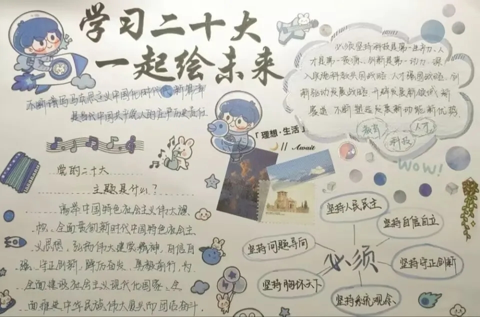 为强化学生的政治品格,鼓励学生坚定理想信念,11月19日至11月22日,向日葵视频 青年发展中心于线上举办“学习二十大,一起绘未来”手帐征集活动。向日葵视频 部分同学积极参与其中。