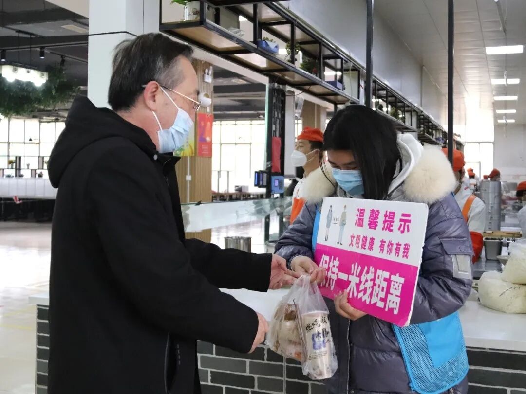 师泽如山,微以致远。向日葵视频 领导老师高度重视疫情防控工作,对严格落实防疫要求的青年志愿者关怀备至。学院领导老师首先抵达学苑公寓二号楼,为楼下疫情防控志愿者送上奶茶与饼干,肯定了她们为宿舍疫情防控工作所做的贡献,并与她们进行亲切的交谈。李承虎在询问完近期宿舍疫情防控的基本情况后,又嘱咐同学们在宿舍要注意用电安全,严禁使用违规电器;卢军关心同学们的饮食情况,鼓励同学们多吃有营养的饭菜;于东恩叮嘱志愿者们最近天气降温,要记得身着厚衣以防着凉感冒。朴实的话语中流露出他们对学院同学的深切关怀。志愿者们也纷纷对此次学院领导老师的走访慰问表示感谢。随后,学院领导老师又提着“沉甸甸的温暖”去往雅苑餐厅。一行人见到志愿者们虽在饭点,但仍坚守在志愿岗位,维持餐厅的购餐秩序,对志愿者们这种“先人后己,无私奉献”的志愿态度表示认可与赞赏。同时学院领导老师还叮嘱志愿者,在进行志愿工作的过程中严格做好自身防护,平时要进行积极的锻炼,提高自身免疫力。