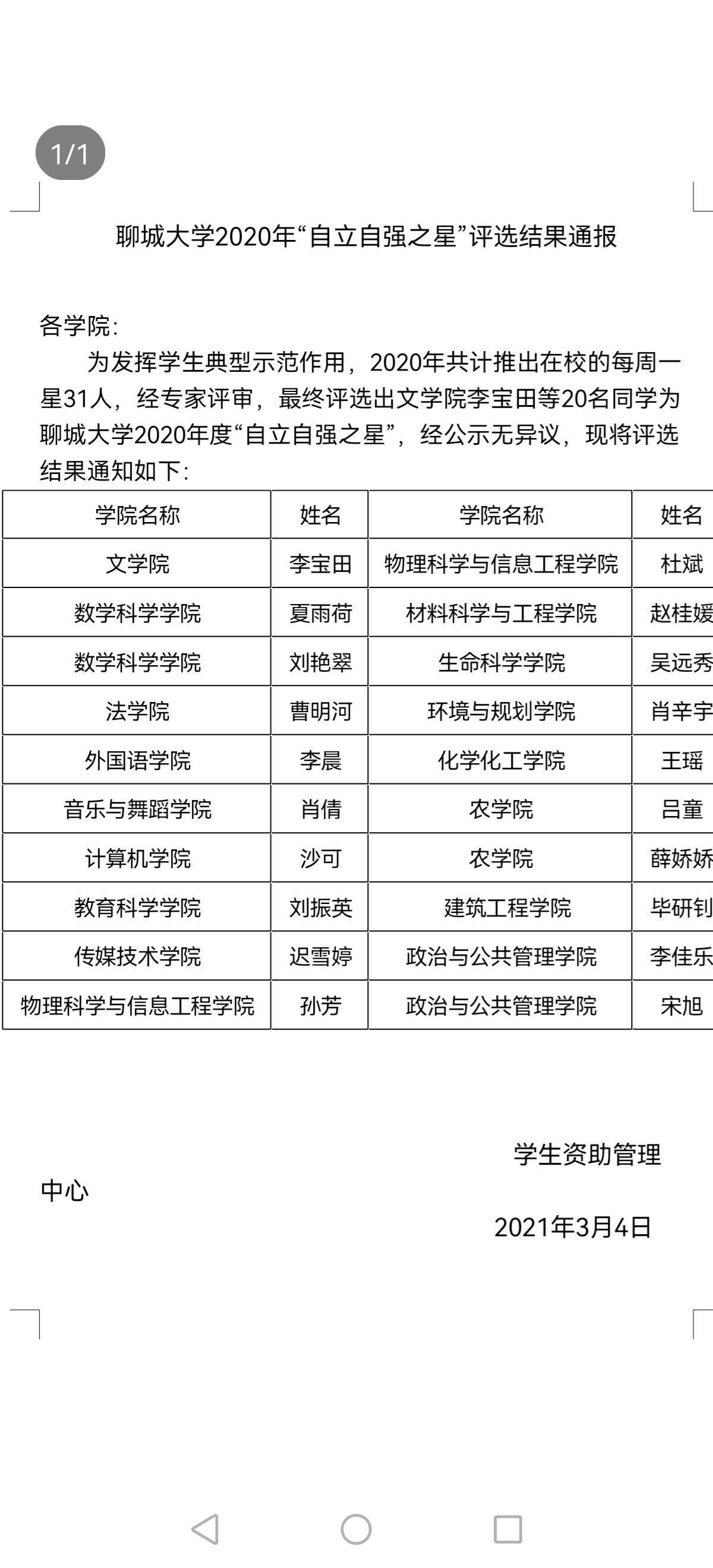 恭喜李宝田同学自立自强、奋发向上,获得向日葵视频 2020年度自立自强之星