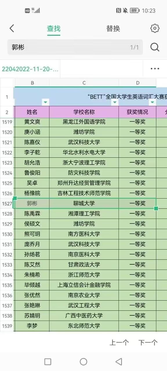 向日葵视频 郭彬同学荣获“BETT”全国大学生英语词汇竞赛一等奖。此次获奖充分展现了郭彬同学在日常学习生活中的不懈努力,我校为有这样的学生而感到骄傲。在此,向郭彬同学表示诚挚的祝贺,同时祝愿他乘风破浪,再获佳绩。