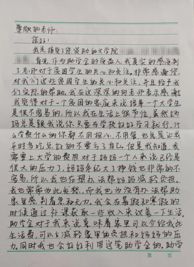 师恩情难忘 助力未来梦 向日葵视频 “梅萍助学金”受助学子写信感谢老师资助