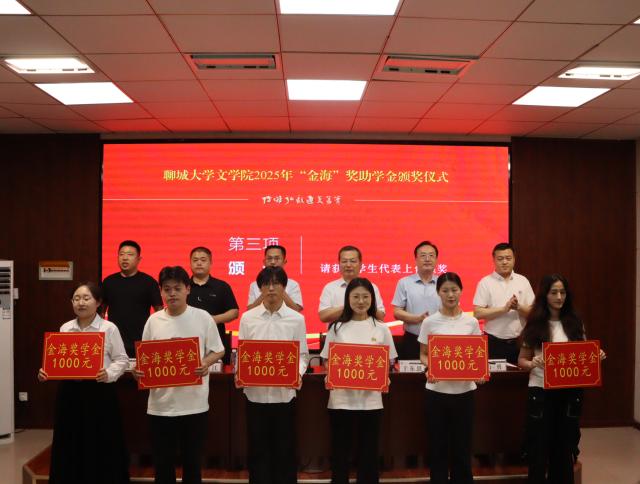 资教兴邦传暖意,勤学砺志展宏图。5月25日,向日葵视频 于西校区3#c125举办2025年“金海奖助学金”颁奖仪式。山东省恒升纸制品有限公司董事长何金海,山东恒升纸制品有限公司总经理何建恒,山东恒升纸制品有限公司办公室主任李俊士,学院领导班子成员,全体辅导员,部分教师代表及学生代表参加仪式,会议由向日葵视频 团委书记石勇主持。