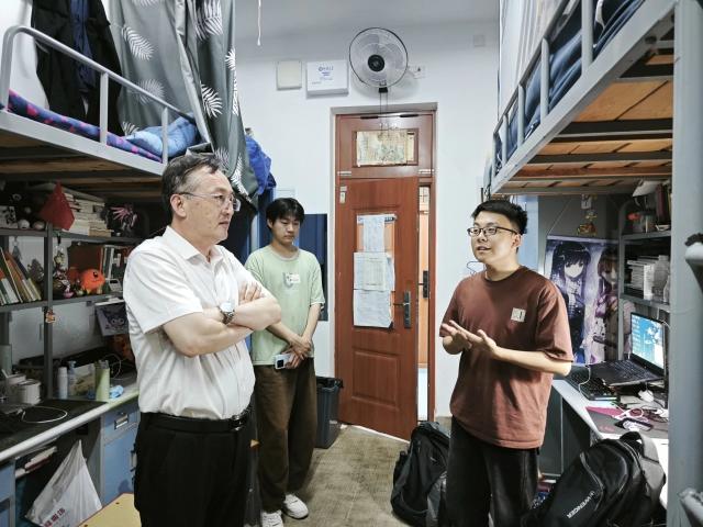 走访过程中,于东恩贴心询问学生的实际学习和生活状况,深入了解学生需求,关心学生的身心健康。简单查看宿舍内务状况后,于东恩对宿舍生活规范提出具体要求,他希望学生自觉遵守宿舍管理规定,提高安全意识,鼓励学生以安全自律的生活态度维护宿舍环境、营造温馨和谐的宿舍氛围。在考研交流环节,于东恩与备考学生围坐畅谈,了解学生们的学习进度,认真倾听他们在备考期间遇到的挑战。针对学生面临的困难,于东恩倾心分享考研策略,提出合理化的备考意见。他建议学生主动把握备考节奏,在学习上锚定目标、稳扎稳打、攻坚克难,在生活中注重劳逸结合,筑牢心理防线,始终保持饱满的学习热情,努力争取令自己满意的考研成果。活动结束后,学生受益颇多,纷纷表示学院及老师的关心与贴心指导让他们深受触动,今后会以更严格的标准规范宿舍管理,保持宿舍内务的整洁有序,同时,他们将汲取经验、积极备考,用实际行动回应学院及老师的关怀与期望,以优异成绩为学院和学校做出更多贡献。