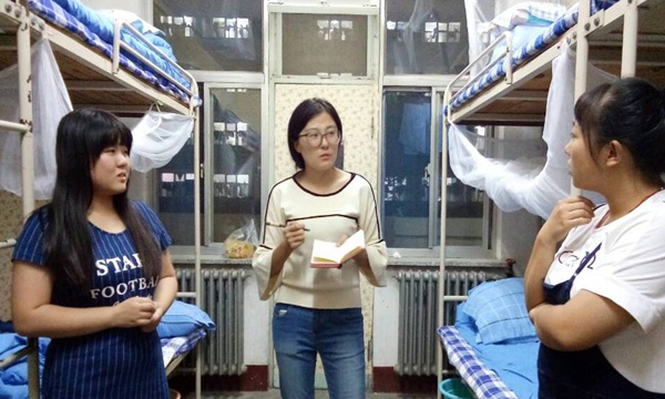 20:00将近,学生代表们来到各自负责的宿舍,表明来意,相互介绍,和蔼的态度与风趣的言辞使现场气氛慢慢活跃起来。紧接着,学生代表回答新生们的问题,并详细讲解了关于申请贫困补助的相关问题,在对各位新生的家庭条件与学习状况有了大致了解之后,学生代表鼓励新生们学会自强自立,学院会为各位争创优良的学习环境,削减学子们求学道路上的障碍。最后,针对宿舍安全问题,学生代表们叮嘱新生团结同学,更要注意用电与个人财产安全,杜绝传销尤为重要。