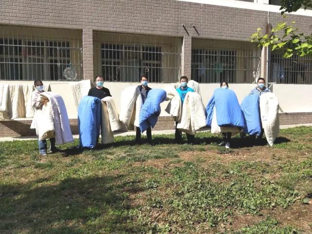 “两岸桃花烘日出,四围被子到天暮”。于东恩组织辅导员和班主任义务为低楼层阴面宿舍的同学晾晒被褥。同时,考虑到进入学生宿舍碰及被褥(私人物品),老师们与同学们进行积极沟通交流,在每床被子上用别针别着一张小纸条,上面有每一个被子小主人的寝室号以及床铺位置信息。经过一天的忙碌,老师们终将被子挂在有阳光照射的栏杆上,纵使满头大汗,老师们依旧发自肺腑地说道,我们是老师,也是你们的学校里的第二家长,为自己孩子晒被子是本能。看到老师们忙碌的身影后,同学们自发地在群里向老师表示感谢,道一声辛苦啦。