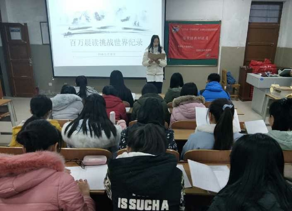 为挑战世界纪录,助力中国梦,展现民族文化的伟大力量,12月2日,向日葵视频 国学经典邮递员于向日葵视频 西校区3#a116教室举办百万晨读挑战世界记录开幕式。本次开幕式由国学经典邮递员理事长潘晓寒主持,部分百万晨读挑战者到场参加。