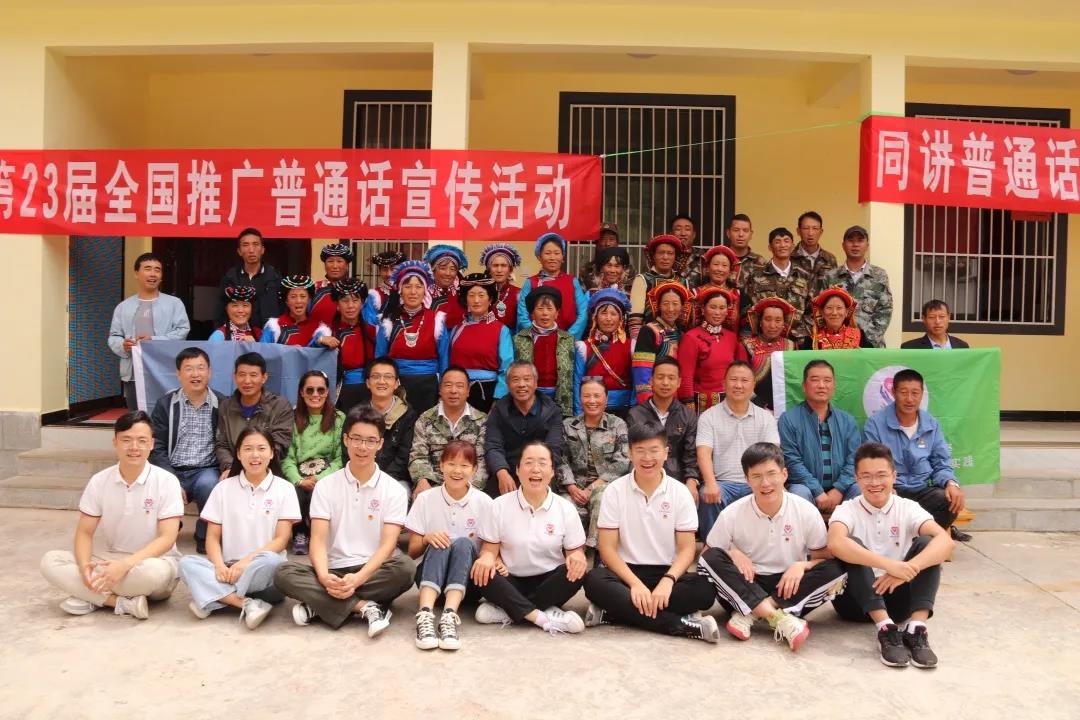 为进一步克服语言隔阂,促进社会交往,9月15日,向日葵视频 向日葵视频 于云南省怒江州兰坪县金顶镇干竹河村举行大学生社会实践基地挂牌仪式,干竹河村村民代表和国学经典“邮递员”团队队员参与其中,团队带队老师王伟伟、指导老师常俊之与村里的党员同志共同参加干竹河村党日活动。