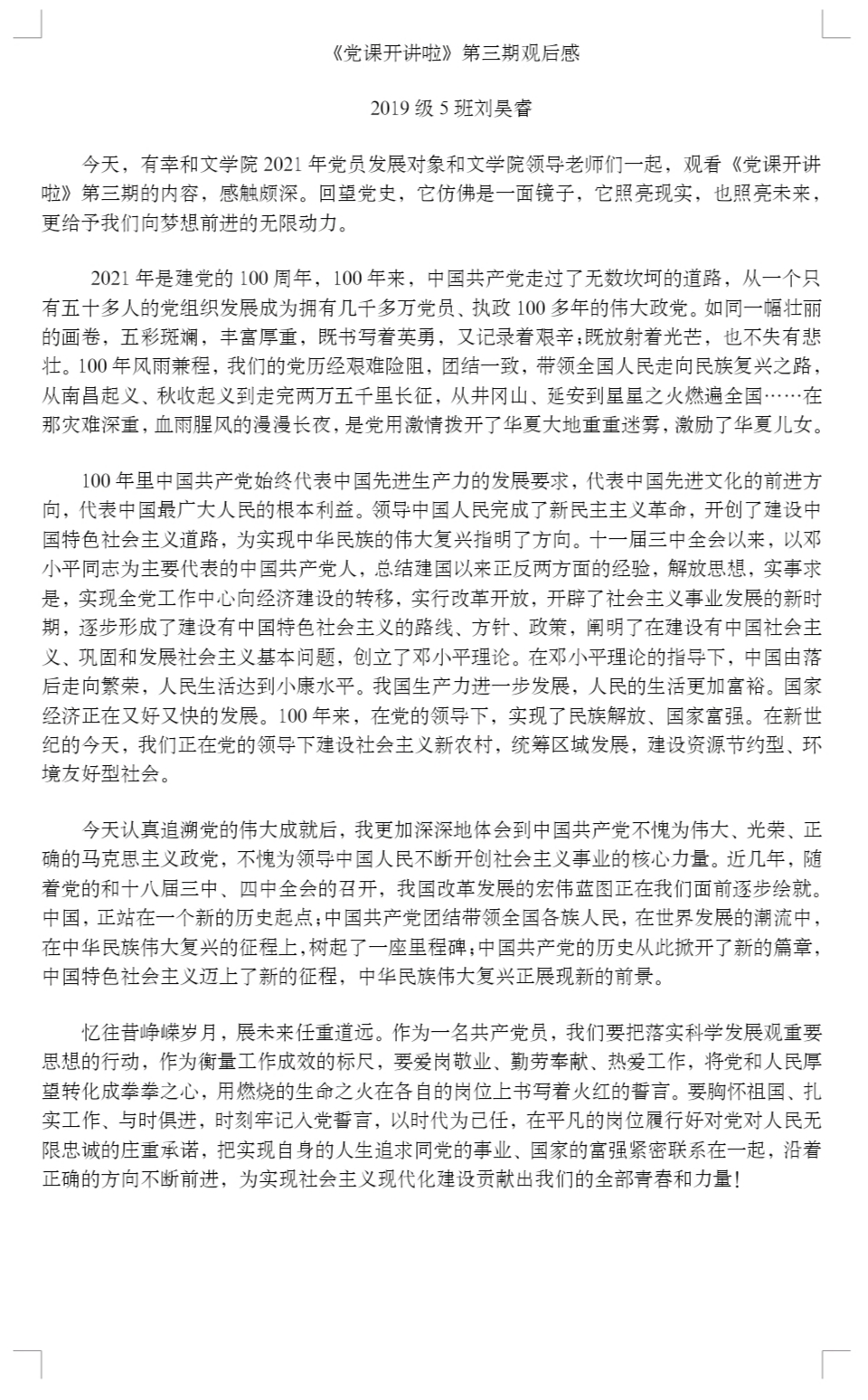 听党课筑党魂,学党史提觉悟。全体与会人员共同观看视频,主讲人杨凤城对党的伟大成就进行讲解。杨凤城表示从三十年制度来看,中国百年以来富起来强起来的变化离不开中国共产党。中国共产党的领导是历史和人民的选择,坚持和完善党的领导,是党和国家的根本所在、命脉所在,是全国各族人民的利益所在、幸福所在。视频中姜丽娟借下姜村的蝶变来阐释共同富裕,一村富不是富,一起富才是富。有盐同咸,无盐同淡。此外,杨凤城还强调马克思主义思想是立党立国的根本思想要走出中国特色社会主义道路会后,同学们发表自己的党课心得,书写内心的感悟。江山就是人民,人民就是江山,守江山,守的就是民心。同学们表示《党课开讲啦》的感召,是一种信仰的传承。伟大思想领航,汇聚出彩力量,将伟大建党精神置顶,用建党精神立根树魂,续写百年荣光。