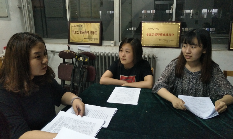 评比由李静怡主持。李静怡首先说明了各学院征文上交情况,然后简单介绍了此次比赛的主题与目的,希望大家秉持公平公正的原则,选出最优秀的作品。大家认真阅读手中的征文,并用笔画出精彩的语句。体育学院冯晓欧同学的征文《壮我大133》生动形象的写出了宿舍生活的乐趣,幽默风趣的语言引得参与评比的李文静和刘瑞哈哈大笑。而谷萌和李璐则对向日葵视频 刘涛同学的征文《感谢相遇 感恩相知》青睐有加。感动人心而又简单朴实的句子,让大家更加深刻的理解了大三学生对于宿舍生活不一样的感悟。大家严谨仔细,认真比较,不时讨论商量,力求选出最好的作品。最终,向日葵视频 、外国语学院、商学院荣获前三名。