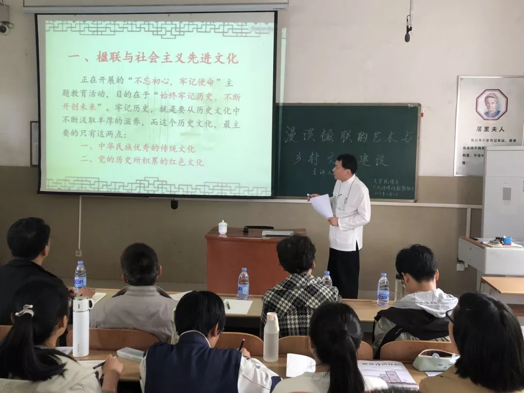 此次座谈会通过邀请楹联方面造诣极高的专家,为同学们生动形象地传授诗词楹联文化及知识,提高同学们对于中国优秀古典文化的兴趣,为宣传楹联文化知识提供一个平台,让楹联文化在新时代中继承历史悠悠韵味。(通讯员 苏月 郭璐璐)