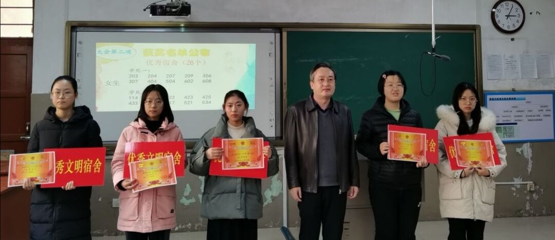 本次表彰大会围绕宿舍和教室卫生要求展开,主持人陈荟如强调,文明和谐的宿舍和干净整洁的教室环境可以提升学生的思想文化修养。大会第一项,陈荟如公布优秀文明宿舍和优秀班级获奖名单。于东恩、胡明洋、贾瑞清对获奖宿舍和班级颁发奖状与生活用品。大会第二项,主持人公布优秀个人名单,优秀先进个人代表王延宁发言,他向大家分享宿舍的日常生活,表示宿舍是像家一样温暖的存在;先进个人代表刘佳琪提出,舍友之间应该共同努力,互相温暖,努力营造良好的宿舍氛围。大会第三项,于东恩发表讲话,强调宿舍环境的重要性,良好的宿舍环境能够促进同学们的学习发展,希望宿舍内部互相动员,统一思想,积极考研,争取全员参与到考研中来,从大一就开始树立明确的目标和方向,坚定考研决心,争取出现考研大满贯宿舍;舍长应协调好宿舍内部关系,促进宿舍人际关系的和谐发展五差宿舍应向十佳宿舍学习,改进宿舍现存的问题,争做优秀文明宿舍。
