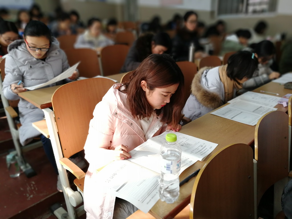 为缓解考前紧张气氛、规范考试步骤、维持考场秩序,学习部负责人王子佳详细的为大家讲解了考试注意事项,强调考试纪律性与重要性,并为大家加油打气。同学们逐渐放松心情,以平稳的心态等待考试开始。清脆的考试铃声响起,试卷下发,拿到试卷的同学们第一时间检查试卷,全身心投入到考试中去,整个考场秩序井然,只闻沙沙悦耳的答题声。随着时间一点一滴的流逝,同学们有的神态自若,笔下生花;有的目光炯炯,埋头苦读;有的眉头紧锁,唉声叹气……作文、听力、阅读理解及翻译各项内容在同学们的努力下逐个攻破,考试时间也所剩无几。考试结束后,同学们上交答题卡,有序的离开考场。