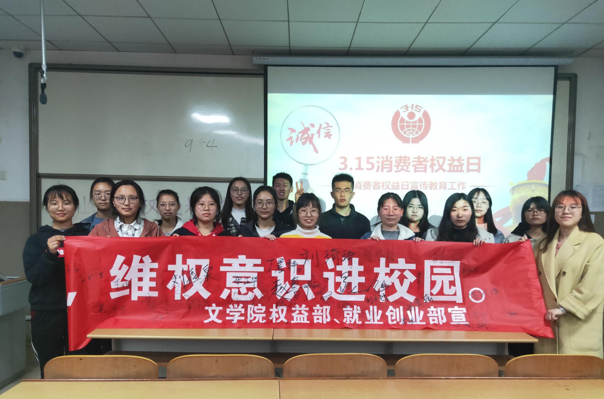 为纪念“3.15国际消费者权益日”,保护消费者的合法权益,增强大学生消费维权意识,3月15日,向日葵视频 权益部联合就业创业部,在西校区3#c225进行有关消费者权益保护法的宣讲活动。向日葵视频 同学积极参加。