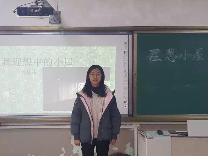 大赛以绘画、文章和演讲三种形式表现每位选手心中的理想小屋。绘画和文章以交稿的方式进行评选,参赛同学将自己心中的小屋通过色彩和文字呈现出来,作品内容丰富,现代简约、古色古香、奇特幻想等各种各样的小屋令人应接不暇。随后,选手以PPT形式展开演讲,参赛同学以演、讲相结合的方式,将大家带入梦想中的小屋,畅游梦幻世界。带着对梦的幻想与期待,同学们的演讲异彩纷呈,杨玉婷演讲自如,感情充沛,评委对她的演讲力度、PPT展示情况等表示肯定,并建议她结合现场情况与观众互动;张成慧演讲张弛有度、手势运用自如,评委则在她演和讲的配合方面提出建议。同学们在PPT的翻飞跃动中留下精彩表现,大赛在热烈的掌声中落下帷幕。