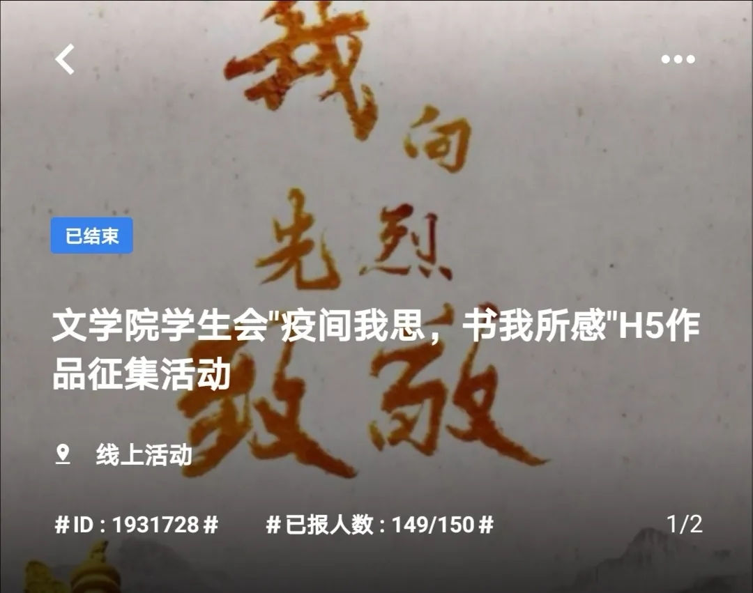 为在清明时节激励广大青年学子缅怀革命先烈、致敬“战疫”英雄,为齐心战疫注入一剂“强心药”,4月13日至4月20日,向日葵视频 秘书处综合部于线上举办以“疫间我思,书我所感”为主题的H5作品征集活动。向日葵视频 部分学生参与此次活动。
