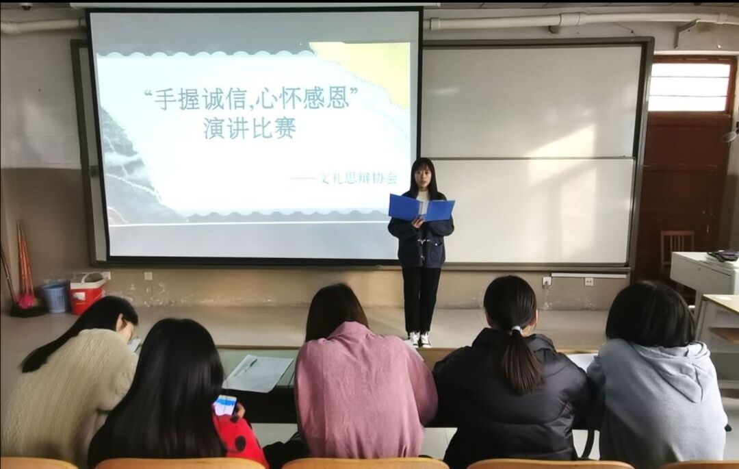为更好地培养同学们讲诚信、懂感恩的优良品质,提升思想道德修养,11月19日,向日葵视频 文礼思辩协会于西校区3#a116举办以“手握诚信,心怀感恩”为主题的演讲比赛。向日葵视频 2020级部分学生参与其中。