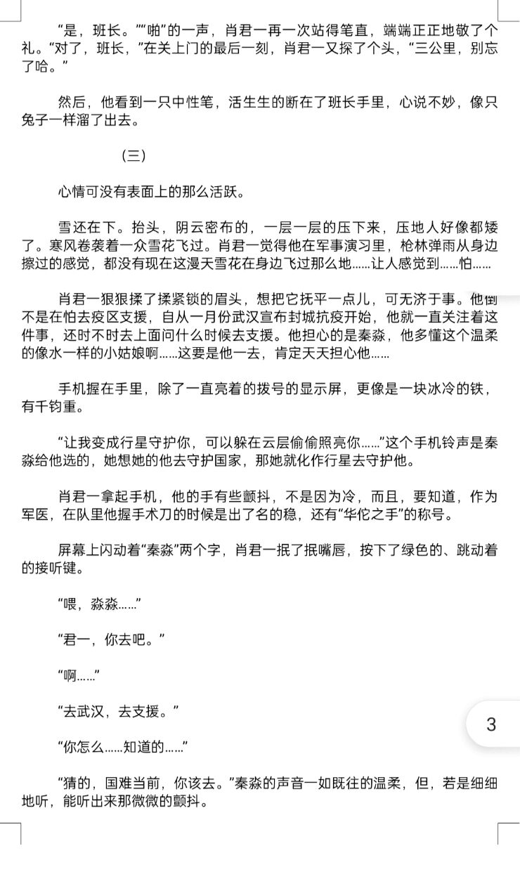 一字一句间,春花绽,寒冰消;一行一文中,情谊暖,敬意扬。“草长莺飞是三月的献礼,杨柳四月是我们的战场”,杨玉婷《花开四月·情暖人间》一文,既描绘烂漫春景、盎然春色,又展现出特殊时期抗疫工作者与普通人共同抗击疫情的双向奔赴。刘冰冰将抗击疫情中的大爱与小爱交织,诉诸星光闪烁的真意和浪漫,《右手敬礼,左手牵你》让我们充分领略到逆行者的坚守与伟大,情真意切,令人动容。如果疫情有颜色,这是一个多么奇妙的设想,刘晶晶别出心裁,以疫情的颜色为出发点,于黑暗中窥见希望之光明。她将民族力量映射在生机盎然的绿色、温暖守护的白色、永恒流淌的红色三种充满希望的色彩中,表达出中华民族对抗击疫情的决心以及普通百姓对即将迎来的安定生活的期许。在这个风景如常却永不被遗忘的春天里,病毒无情,人间有爱,每一片随风飘落的花瓣都有存在的意义,每一位挺身而出的人都值得我们敬佩。