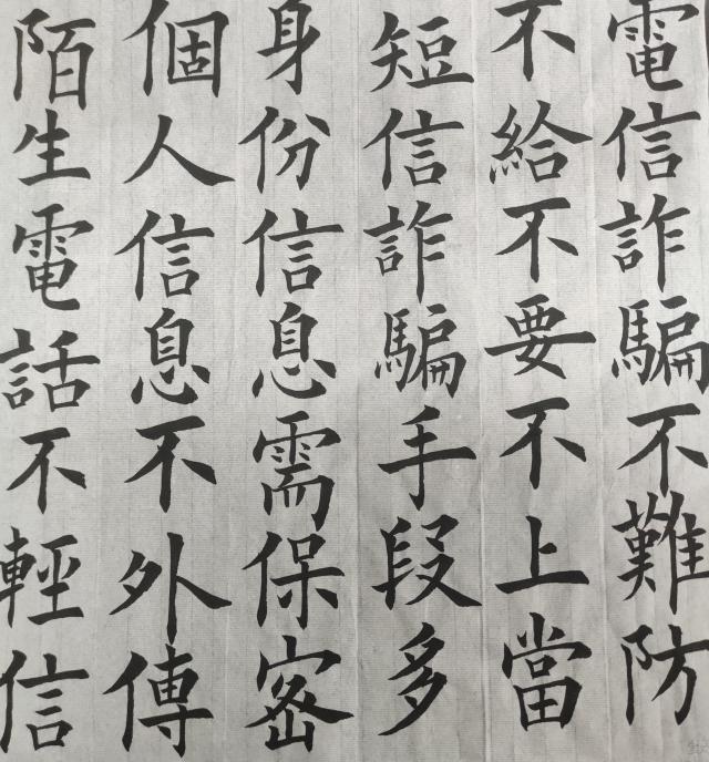 合理消费,远离网贷。此次活动将金融安全知识与书法联系起来,在提升同学们书法技能的同时,还能够丰富同学们的安全防范知识,锻炼学生们应对金融诈骗的能力,避免金融诈骗,从而帮助同学们远离校园贷。(通讯员 燕心怡 张嘉晨)