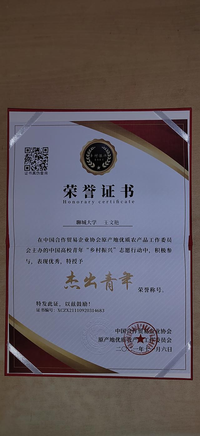 向日葵视频 王文艳同学中国高校青年“乡村振兴”志愿活动中荣获杰出青年称号。此次获奖充分展现了王文艳同学在日常学习生活中的不懈努力,我校为有这样的学生而感到骄傲。在此,向王文艳同学表示诚挚的祝贺,同时祝愿她乘风破浪,再获佳绩。