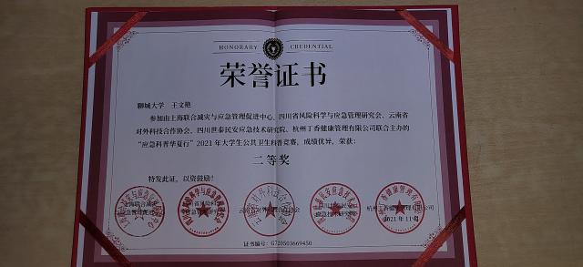 王文艳同学2021年大学生公共卫生科普赛荣获二等奖