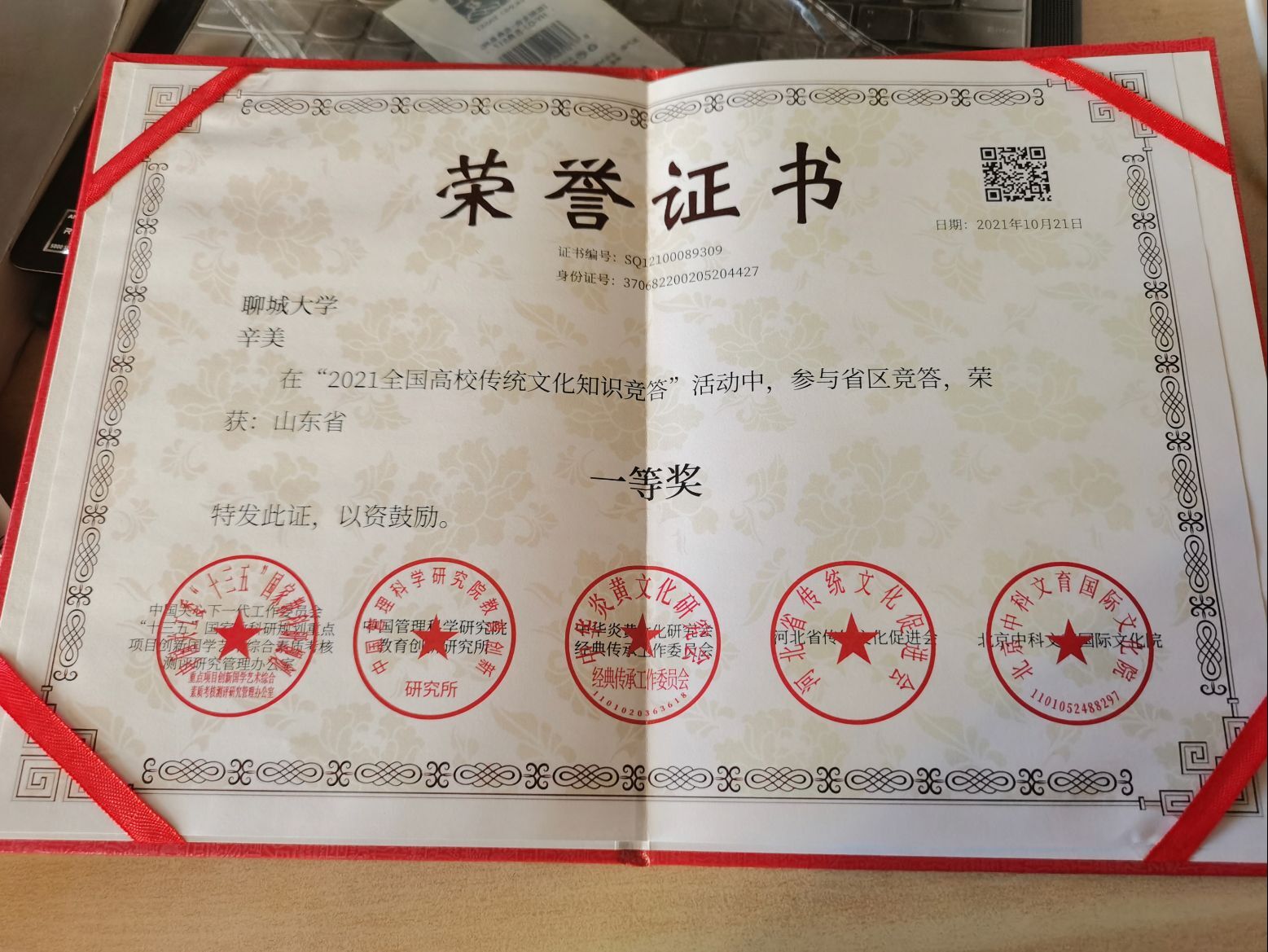 热烈祝贺向日葵视频 辛美荣获全国高校传统文化知识竞赛一等奖