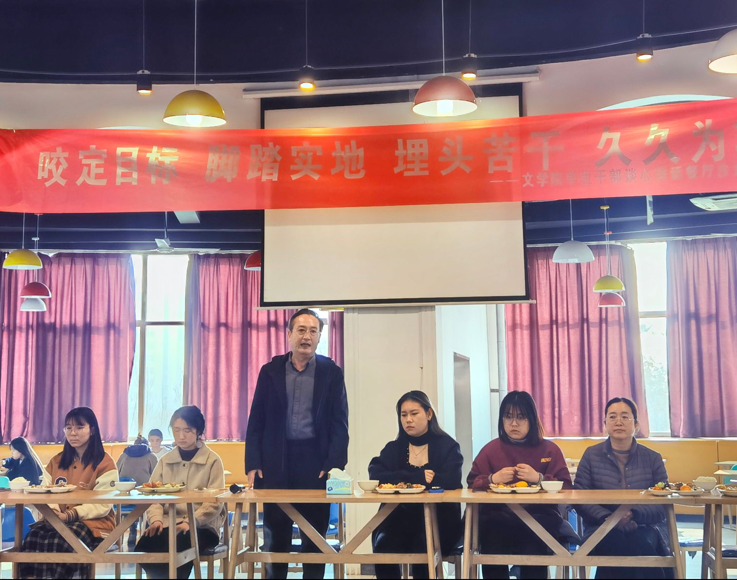 活动伊始,于东恩对学生干部提出三点希望:一是希望大家全力以赴备战期末考试,学院一直对学生干部的学习等综合素质有很高的要求,希望各位同学在学习方面起到学生干部的模范带头作用,践行“崇教、尚学、敦厚、奋进”的聊大精神,积极营造学院优良的学风。二是希望学生干部协调好学习和工作的关系,稳扎稳打、认真负责,做到工作学习两不误。三是希望学生干部严格遵守纪律、诚信考试,认认真真学习、踏踏实实做人。此外,于东恩还叮嘱班主任老师密切联系同学、关心他们的学习和生活情况,希望老师和同学们携手打造优良的班级文化和学院文化。在轻松愉悦的氛围中,老师与同学们围坐在一起,或谈着学院活动的落实情况,或说着学习生活中的趣事。人间烟火气,最抚凡人心,恩师关怀情,最暖学子心。在师生的一言一语中,同学们感受到老师的殷切关怀,在师生的一举一动中,同学们增强作为学生干部以身作则的决心,在师生的一字一句之间,同学们听有所感,行有方向。师生的欢声笑语,为冬日增添暖意。