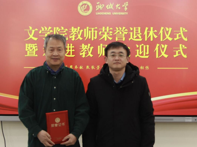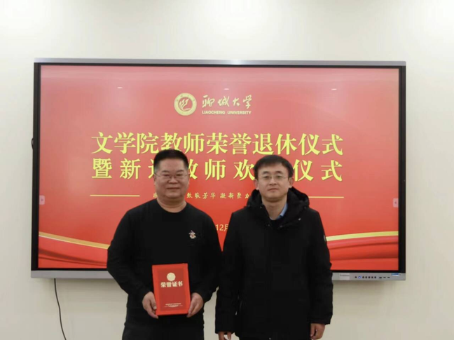 首先,李承虎向三位荣休教师送上真挚的祝福,赞扬他们兢兢业业、任劳任怨的优良品质,同时希望新进教师不忘初心,秉承聊大精神、学院院训,不断推动学院高质量发展。闫振宁为荣休教师颁发证书,希望荣休教师们能继续关注与支持学院发展,为学院发展献计献策。冀相奎介绍三位荣休教师的工作经历及工作业绩,充分肯定他们为学院学校作出的重要贡献,并对新进教师表达期许:希望新进教师们能够成为有理想信念、有道德情操、有扎实学识、有仁爱之心的“四有”好老师。肖佃军以赠送纪念品的方式传递“莫道桑榆晚,为霞尚满天”的浓浓真情。新进教师们用一束束鲜花表达了对荣休教师的尊敬、祝福之情,荣休教师向新进教师代表赠送传承纪念品,希望他们可以接过教书育人的接力棒,用实际行动践行一名教师的初心使命。随后,两位荣休教师依次发表感言,陈黎明用朴素的语言回顾了自己的工作经历,言谈间饱含自己对教育事业的忠诚和热爱,深蕴自己对学院发展的美好祝愿。刘广涛表示自己在学院找到了归属感与幸福感,希望新进教师可以将中国文化当成一份责任、一份热爱传承下去。徐一凡、杨来来作为新进教师代表发言,表示在未来的工作中将继续努力,沿着前辈的足迹勇于担当、扬帆起航。教师代表董秀梅向三位荣休教师表示崇高敬意,致以美好祝福,向新教师表示热烈欢迎,希望他们以人为本,培养栋梁之才。教师代表宁登国回忆起与三位荣休教师工作过程中的点滴,表达与荣休教师们的深厚感情,祝愿三位荣休教师退休以后,活出人生的豁达、人生的洒脱,活出人生的第二个春天。教师代表张雪飞对勤勤恳恳从事教育工作几十载,把美好年华奉献给教育事业的三位荣休教师表达衷心感谢。最后,伴随着一曲《不忘初心》,参会教师们合影留念。