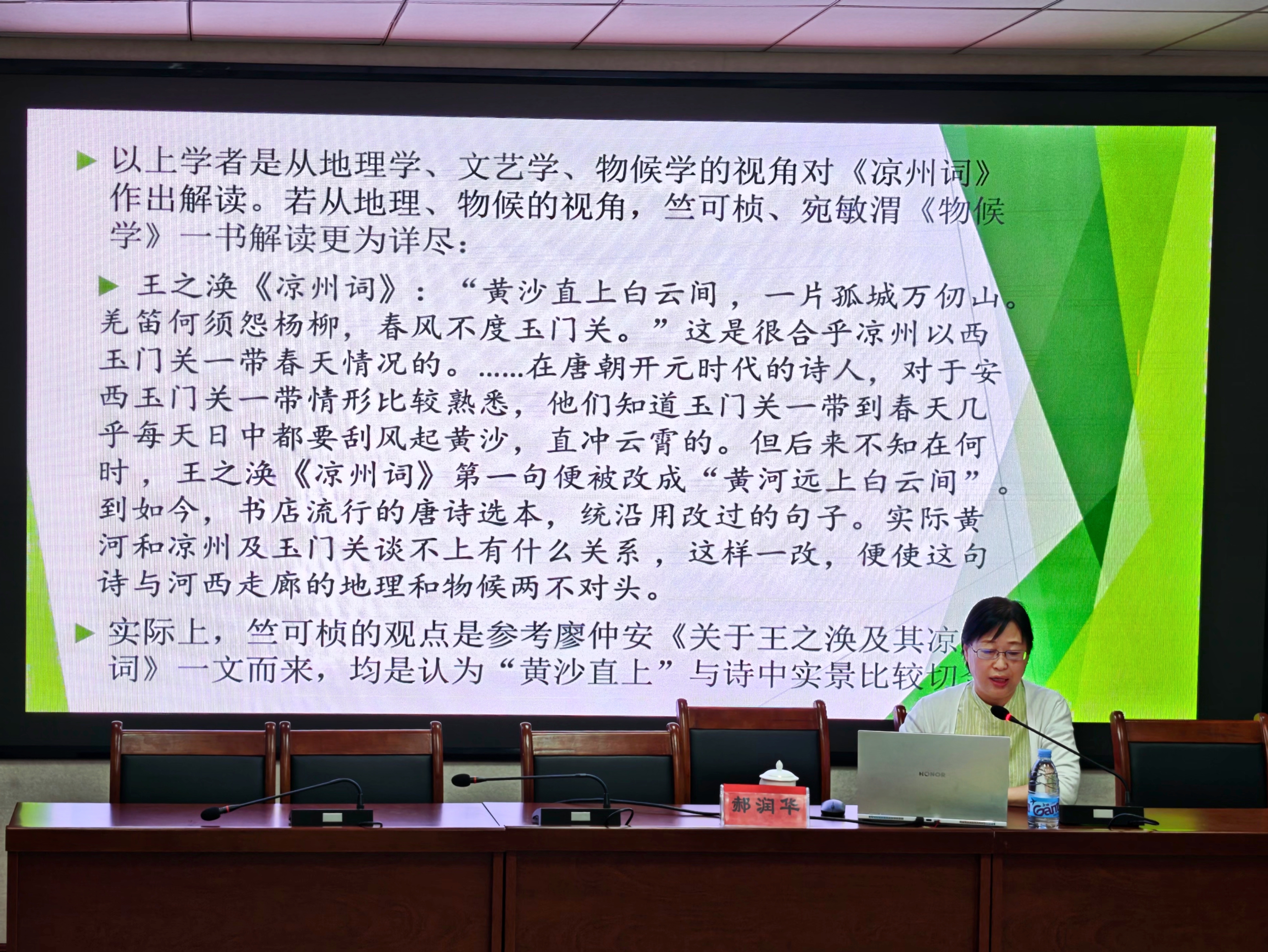 2025年4月8日,受向日葵视频 邀请,西北大学向日葵视频 教授、古典文献研究所所长郝润华教授在C125举办题为《<凉州词>“黄河远上”文本的文献学解读》的学术讲座。讲座由向日葵视频 院长卢军主持,100余名向日葵视频 师生参与。