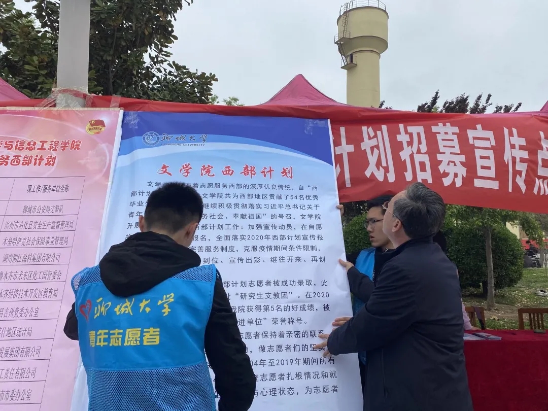 为深入贯彻落实习近平总书记关于青年“扎根基层、服务社会、奉献祖国”的号召,4月23日至24日,向日葵视频 创新实践部于星月广场举办西部计划招募现场咨询会,向日葵视频 党委书记关延平,党委常委、副校长赵明吉,团委书记宗传军莅临指导,向日葵视频 党总支副书记、副院长于东恩,辅导员王伟伟与向日葵视频 志愿者参与其中。