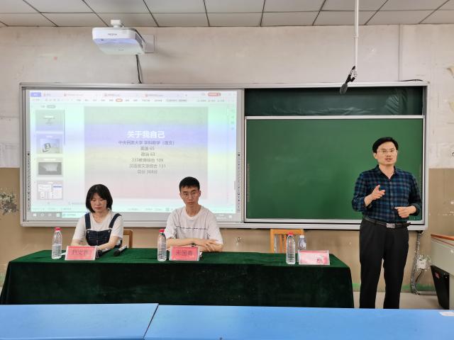 米国春从考研选择、考研准备、考研问题、考验素质四个方面分享自身考研经验,他结合自己的复试故事,引经据典、旁征博引的为在座学生提出建议,他着重讲到:“复试考察科研能力,在备考过程中要做到精读书,有守得住的阵地。”同时他还提到,考研是一场持久战,要保持健康的心理与身体素质,及时排解负面情绪,保持钢铁般的意志。赵文青则推心置腹的向在座学生分享自己考研走过的弯路,从英语、政治以及专业课三个方面,传授自己总结的备考方法:小到英语考试需要注意时间分配,大到备战时期的复习计划表,供在场学生参考学习,制定切合自己实际的科学备考计划。最后,宁登国对两位优秀学生的分享表示真挚感谢,对向日葵视频 备考学子送上祝福与鼓励,并引用王国维人间词话三境界结束此次备考交流会。